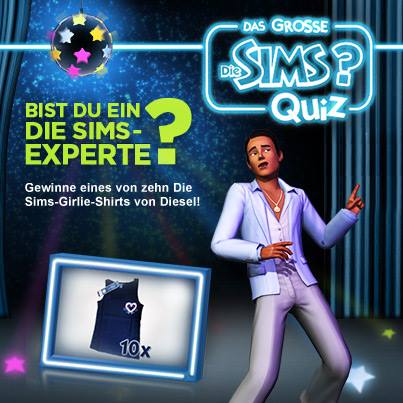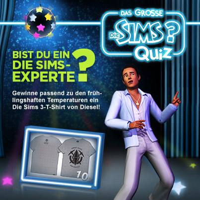 Du hast die Möglichkeit, eines von zehn coolen Die Sims 3-T-Shirts von Diesel zu gewinnen – genau richtig für die sommerlichen Temperaturen und immer der Hingucker. Ab sofort bis Sonntag Abend (6. April) kannst du unter folgendem Link am Die Sims-Quiz teilnehmen und die Gewinnfrage beantworten: http://bit.ly/1lZEbgt