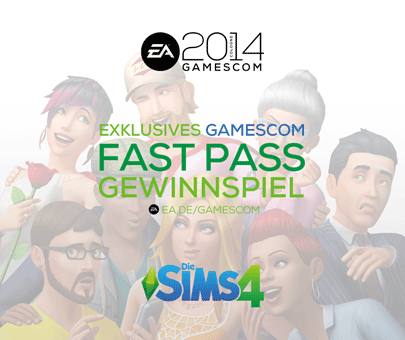 Ihr habt keine Lust auf die Warteschlange? Dann holt euch euren persönlichen FASTPASS für Die Sims 4 und erhaltet sofort Zugang: http://Fastpass.ea.de. Ihr bekommt einen genauen Termin mit Uhrzeit und habt freien Zutritt ohne dafür anstehen zu müssen. Ab sofort läuft die Verlosung. Macht mit. Wenn ihr Glück habt, werdet ihr sofort benachrichtigt und könnt euch über euren FastPass samt seinen Annehmlichkeiten freuen.
