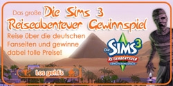 Mache mit beim neuen Reiseabenteuer Gewinnspiel und bereise die deutschen Fanseiten. Erfahre alle brandneuen Infos aus den Gamescom-Specials und beantworte unsere Reiseabenteuer-Fragen, um am Gewinnspiel teilzunehmen. Mit etwas Glück gewinnst du eine unserer drei großen, handsignierten Die Sims 3-Leinwände. Das simlische Ägypten ist auf jeden Fall eine Reise wert.